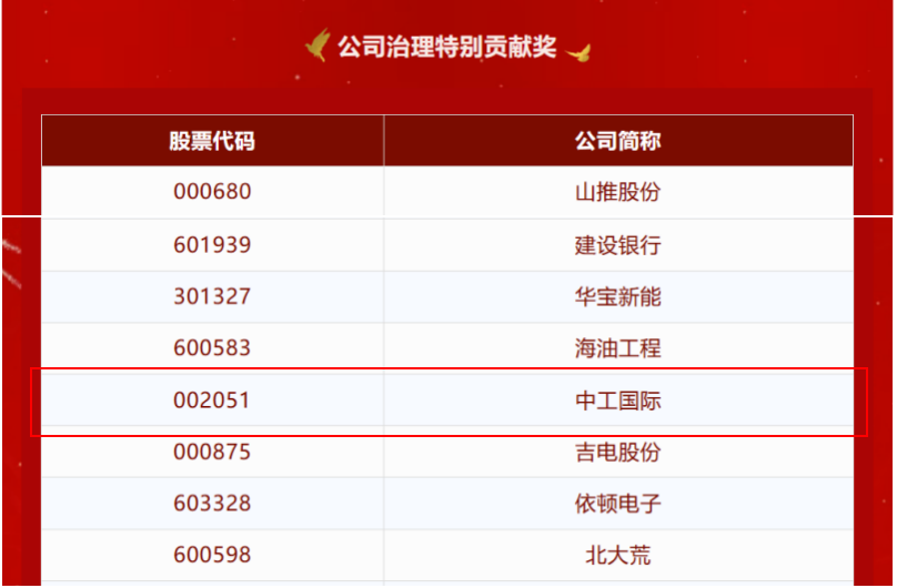 近日,第二十届中国上市公司董事会“金圆桌奖”正式发布,中工国际过去一年在公司治理、改革发展、ESG管理等方面的持续优秀表现再次得到市场认可,连续第四年荣获公司治理特别贡献奖。这项荣誉的取得体现了资本市场对中工国际公司治理工作的充分肯定。