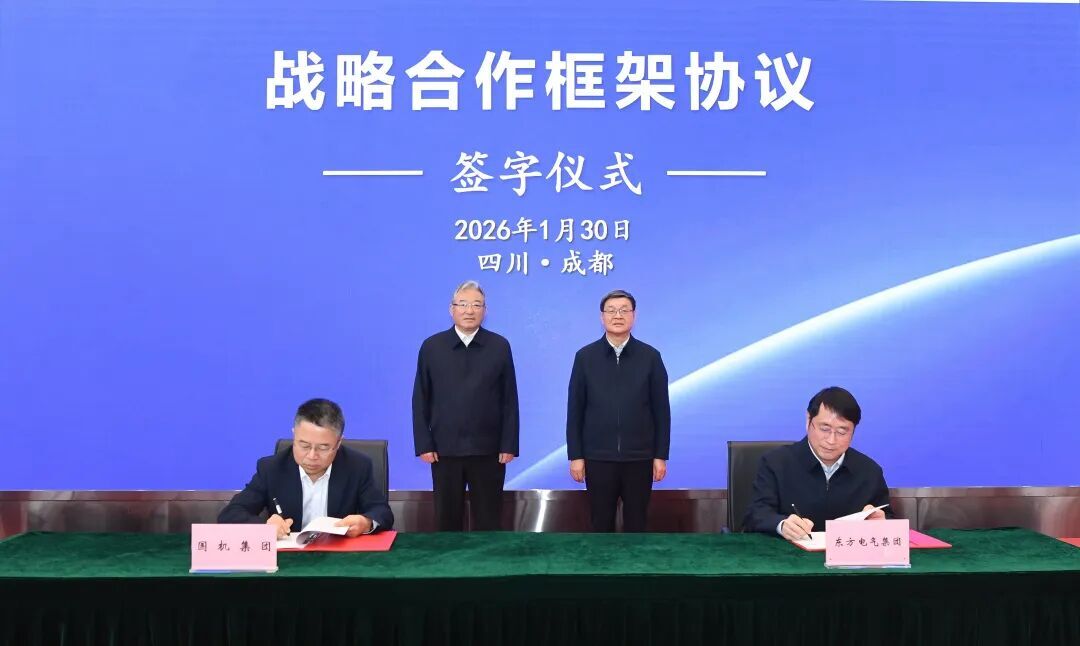 1月30日,国机集团与中国东方电气集团有限公司(以下简称“东方电气集团”)在成都签署战略合作框架协议。集团党委书记、董事长张晓仑与东方电气集团党组书记、董事长罗乾宜会谈并见证签约。东方电气集团总经理、党组副书记张彦军主持签约活动,集团党委常委、副总经理沈瑞宏,东方电气集团党组成员、副总经理李建华代表双方签约。国机集团总经理助理,中工国际党委书记、董事长王博参加本次签约活动。