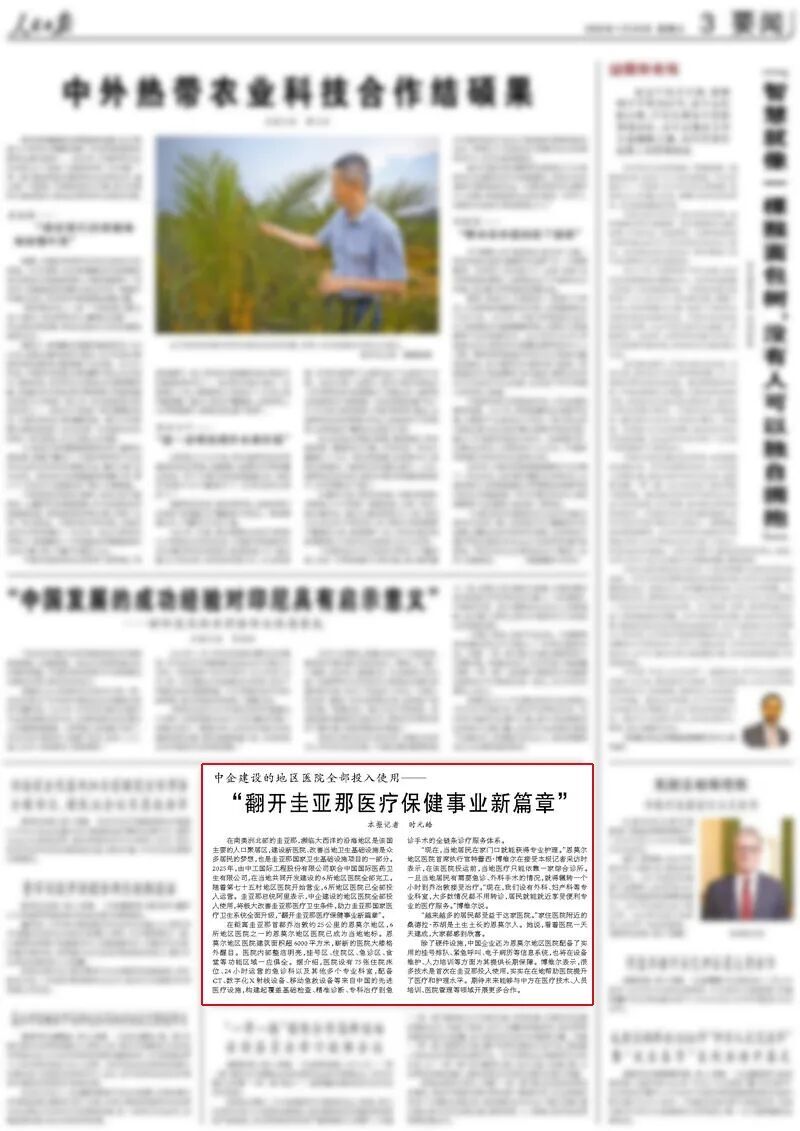 1月28日,人民日报以《中企建设的地区医院全部投入使用——“翻开圭亚那医疗保健事业新篇章”》为题,对中工国际承建的圭亚那地区医院群项目恩莫尔医院进行了专题报道。