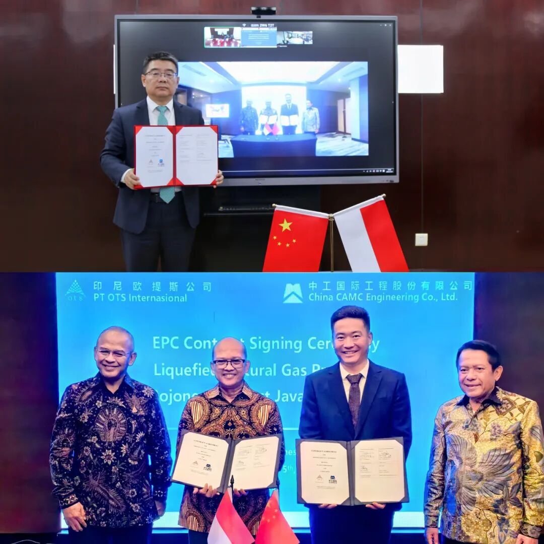 5 декабря заместитель генерального директора компании CAMCE Янь Хайлу, выступая от имени компании, и председатель правления индонезийской компании OTIS International Тирта подписали в онлайн-формате коммерческий контракт на подрядные работы по проекту «сжижения природного газа в Восточной Яве (Индонезия)»(EPC-контракт). Это событие ознаменовало новый прорыв компании в нефтегазовой энергетической сфере Индонезии.
